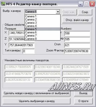 Программа может изменять камеру просмотра повтора. Т.е. файл TR.CAM из папки с трассой. Русская версия. Есть документация на англ. языке.