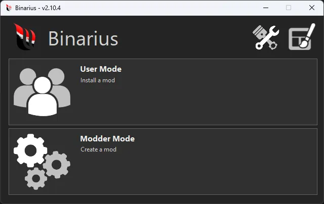 - Выберите иконку с тремя пользователями (User Mode - Install a mod).