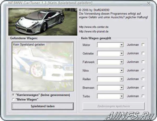Car Tuner Программа может тюнинговать тачки из вашего гаража. Не забудьте запустить SaveEditor и нажать FixChkSum